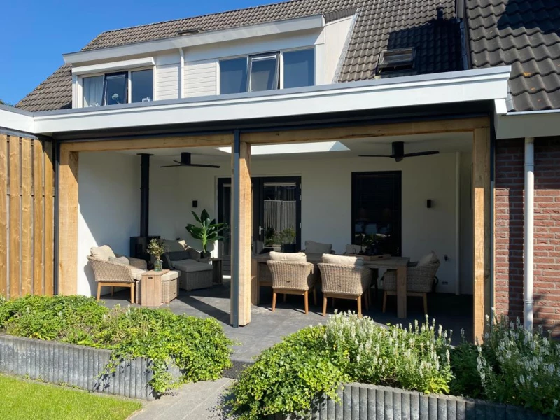 Met trots presenteren wij ons recent voltooide project: de toevoeging van een prachtige overkapping aan een bestaande woning. Dit project is een waar toonbeeld van ons vakmanschap en onze toewijding aan het verbeteren van leefruimtes.