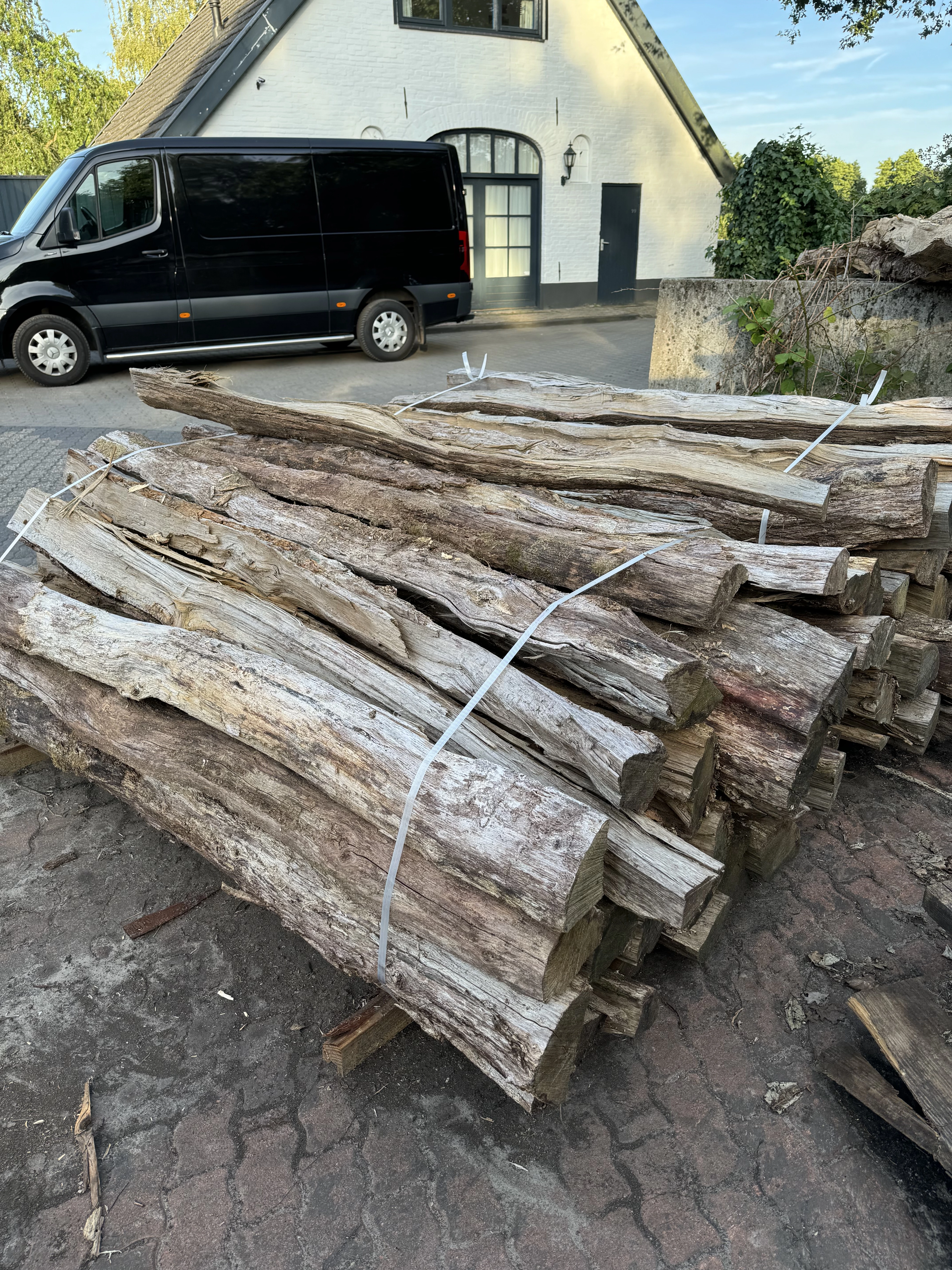 Massieve, gekloofde eiken palen met een lengte van 200 cm en een diameter van circa 15 cm. Deze robuuste palen hebben een natuurlijke, rustieke uitstraling en zijn ideaal voor tuin- en erfafscheidingen, boomgaardafrasteringen, of als steunpalen in landelijke buitenprojecten. Door het kloven krijgt het eikenhout een karakteristieke, grillige vorm die perfect past bij authentieke of natuurlijke tuininrichtingen.